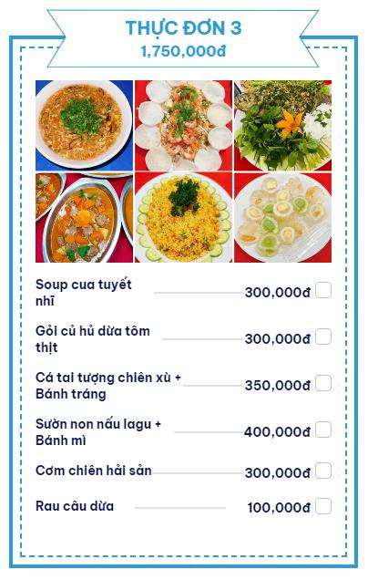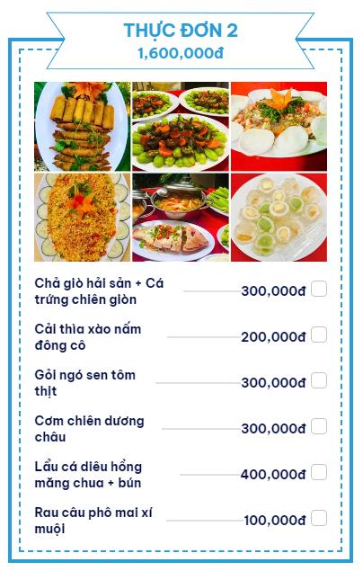 Giá trên mỗi bộ thực đơn đãi tiệc đã bao gồm bàn ghế, dụng cụ ăn uống, nhân viên phục vụ và phí vận chuyển (áp dụng khi quý khách đặt từ 4 bàn trở lên và trong nội thành thành phố Hồ Chí Minh). Nếu quý khách đặt dưới 4 bàn, Sum Vầy Catering vẫn sẽ cung cấp trọn gói đầy đủ dụng cụ ăn uống, bàn ghế, nhân viên phục vụ, nhưng Sum Vầy Catering sẽ phụ thu từ 300.000đ – 500.000đ tiền vận chuyển 2 chiều, tùy vào từng khu vực bạn muốn tổ chức tiệc.