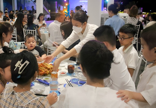 Đội ngũ nhân viên phục vụ của Sum Vầy Catering được đào tạo bài bản từ cách setup không gian tiệc, phục vụ khách trong bữa tiệc và dọn dẹp sau tiệc. Đảm bảo sẽ giúp khách hàng có một bữa tiệc tại nhà thật trọn vẹn.